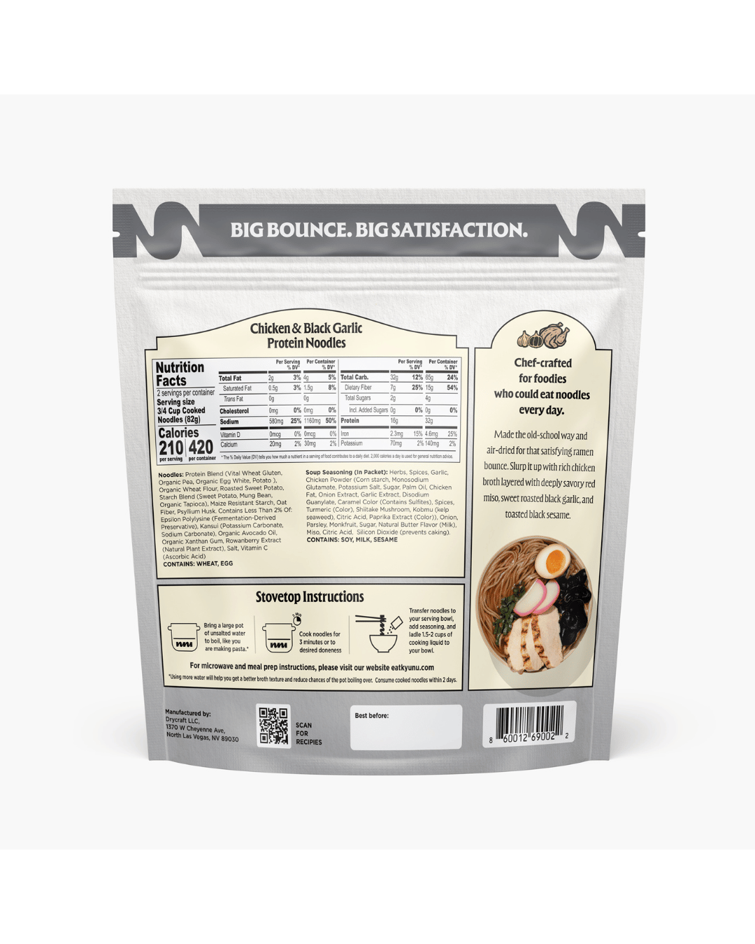 Ready in just 3 minutes, our bouncy noodles and savory black garlic broth will make you rethink everything you knew about "healthy" alternatives. Trust us—you seriously cannot tell the difference.